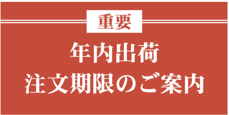 ※上記は短納期オプションのご利用がない場合のご注文期限です。短納期オプションのご利用が可能な商品は上記より期限が延びる可能性がございます。